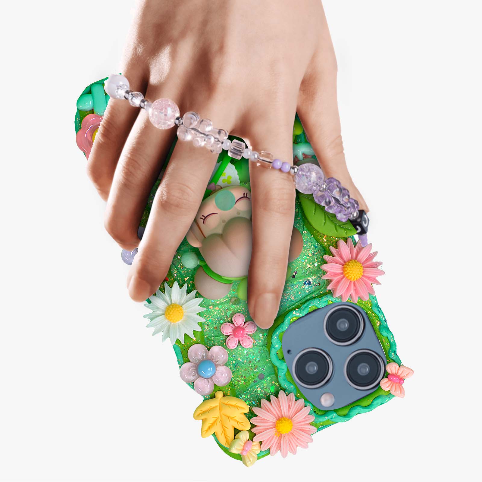 Ariel Mermaid Cream Glue Phone Case, Handmade, Art Gift, Ocean Style