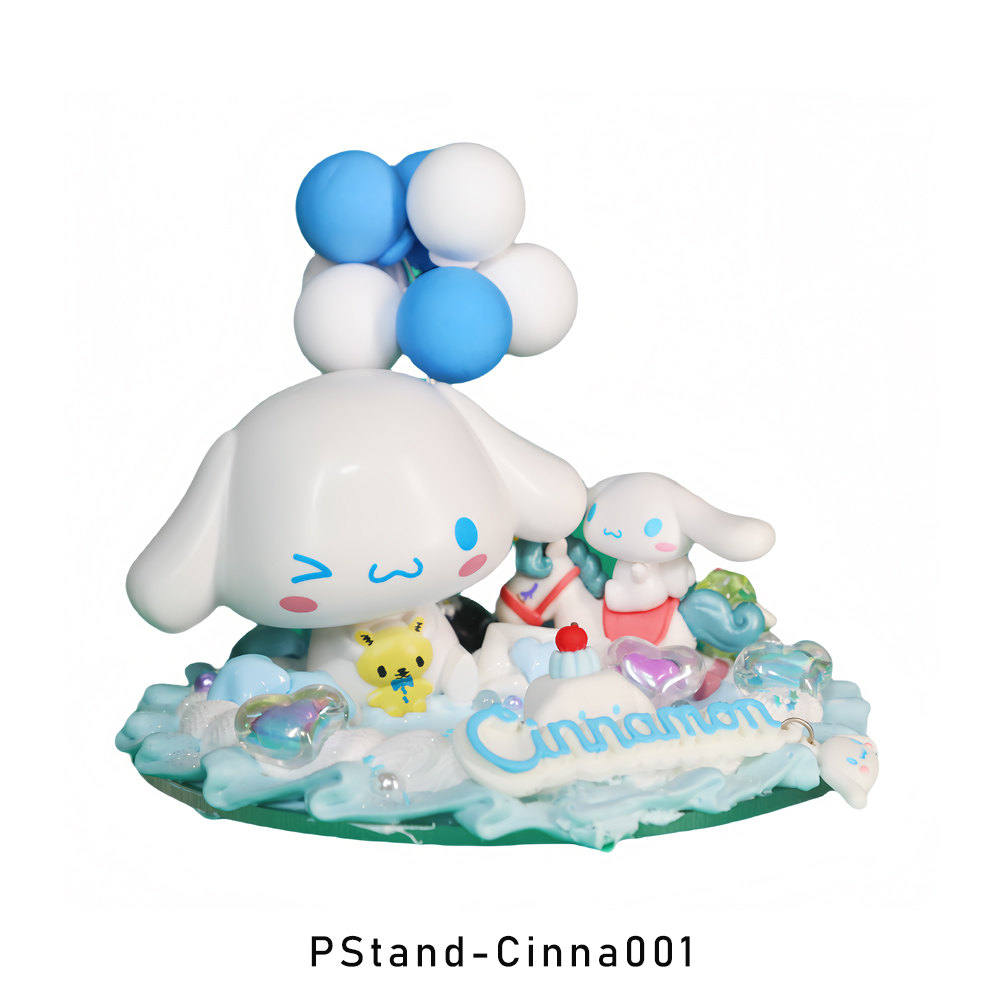 Inspiration Handmade DIY phone stand Pstand Cinna001, Blue and white theme Cinnamoroll, with the Balloon, Silver and white hearts. Personalized gift,Art Lovers Gift.